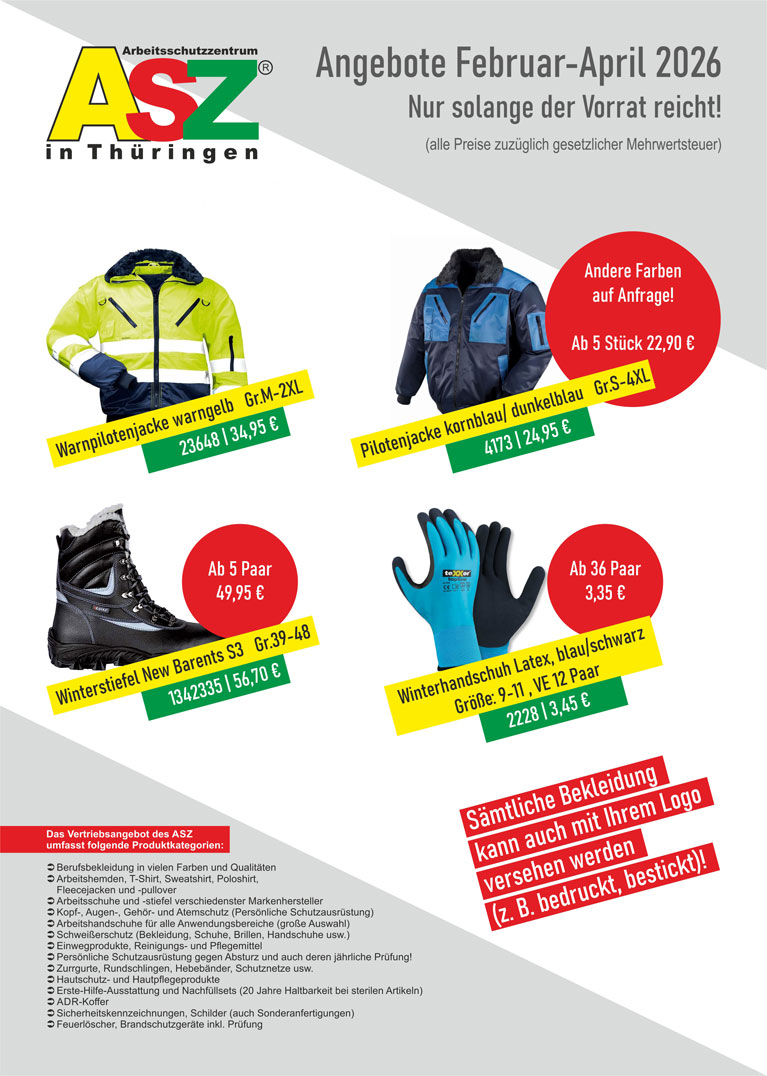 Hier finden Sie eine Auswahl aktueller Angebote an persönlicher Schutzausrüstung. Die Angebote sind gültig vom Februar bis April 2026.